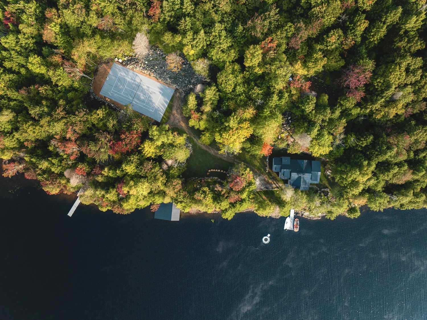Accessible only by boat or seaplane, Habitat blends architectural elegance with the untamed soul of the Adirondacks. Every space opens to nature: sweeping lake views from every room, sunlight spilling across timber and stone, and decks designed for dining, lounging, and listening to the quiet.
