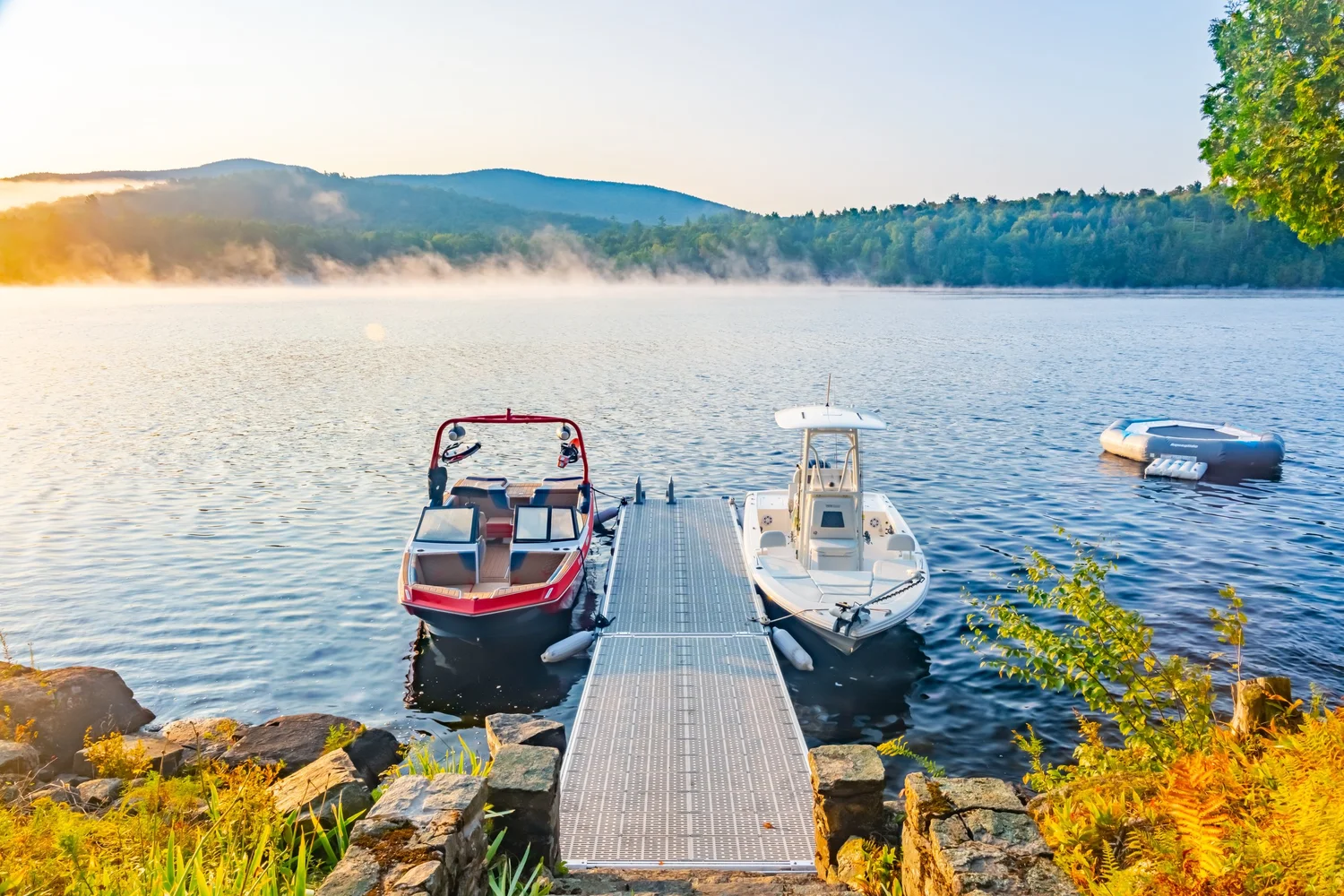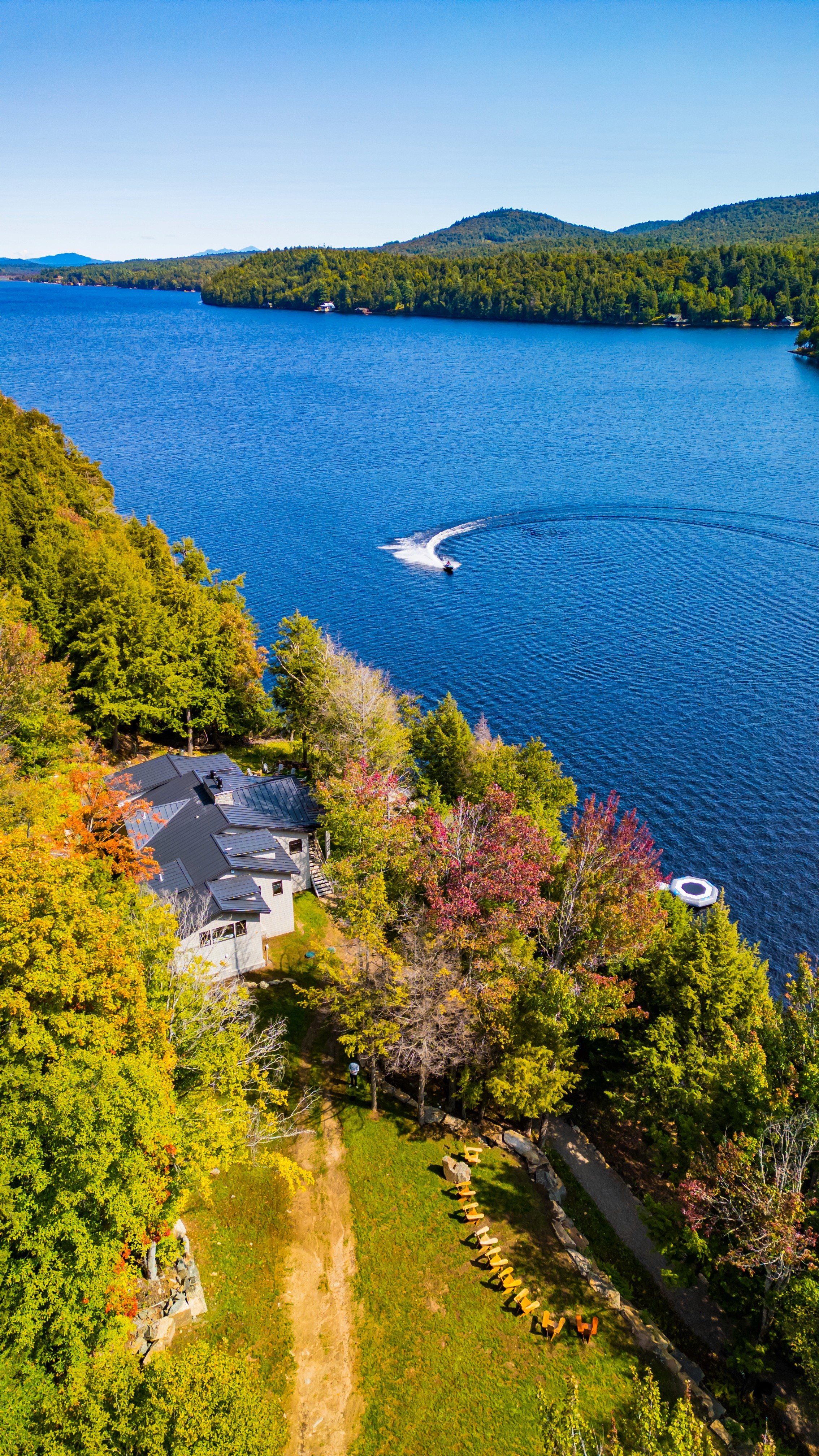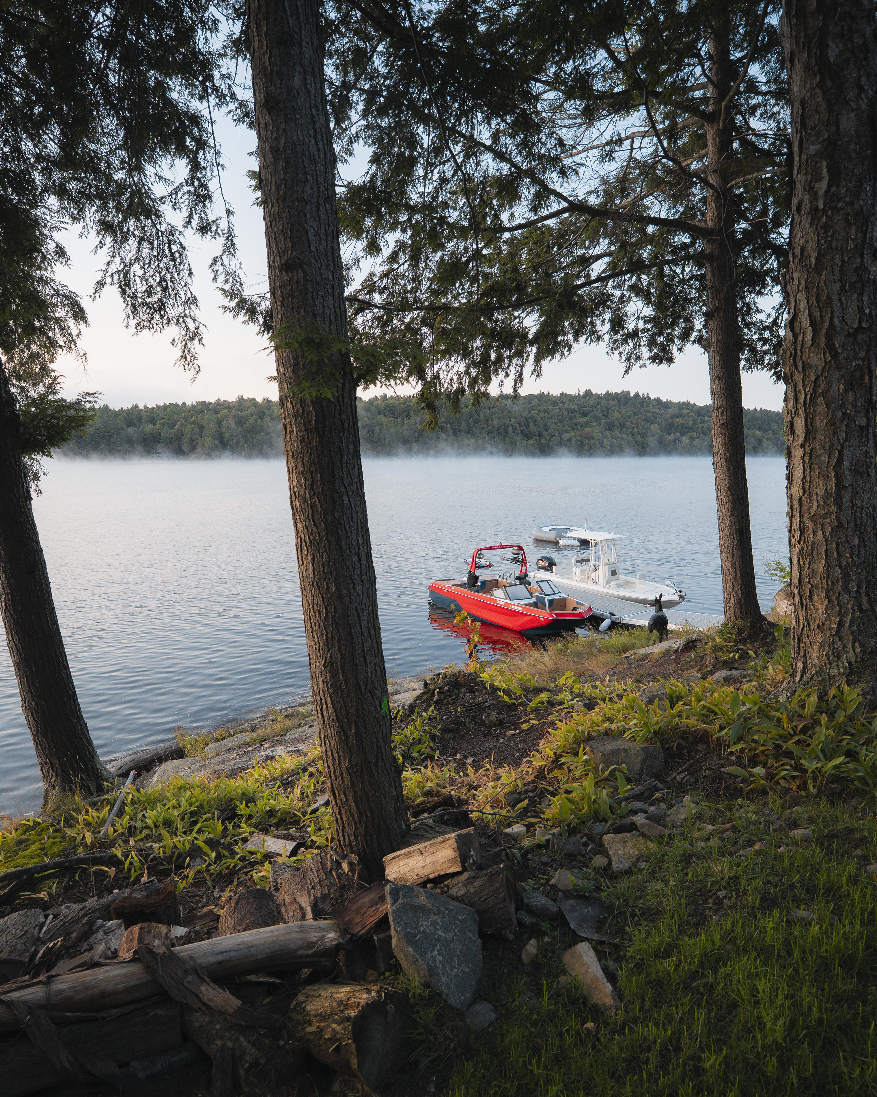 Days here unfold at your own rhythm. Mornings begin with coee on the dock as mist lifts from the lake. Afternoons invite exploration—paddling through hidden coves, hiking forest trails, or cruising the water in the Nautique GS22. Evenings arrive softly, with a crackling fire and a sky alive with stars.
